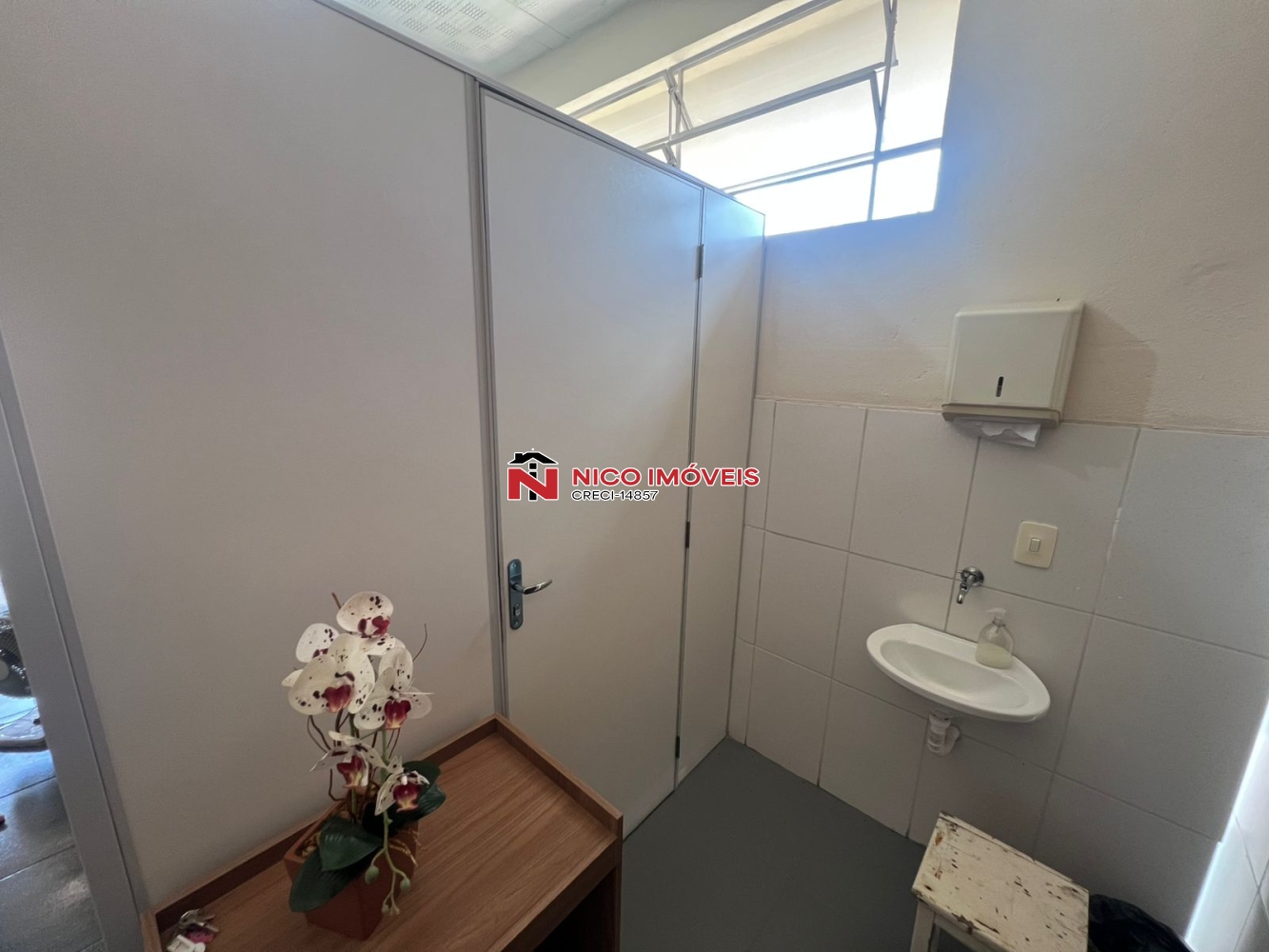 Sala comercial de aproximadamente 20m² com um banheiro e lavabo