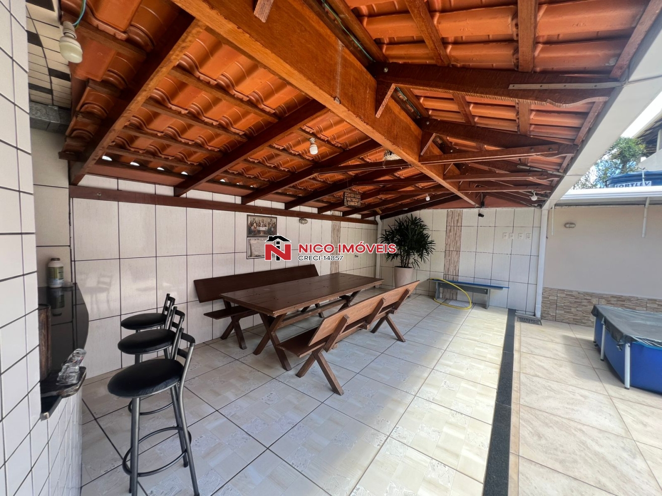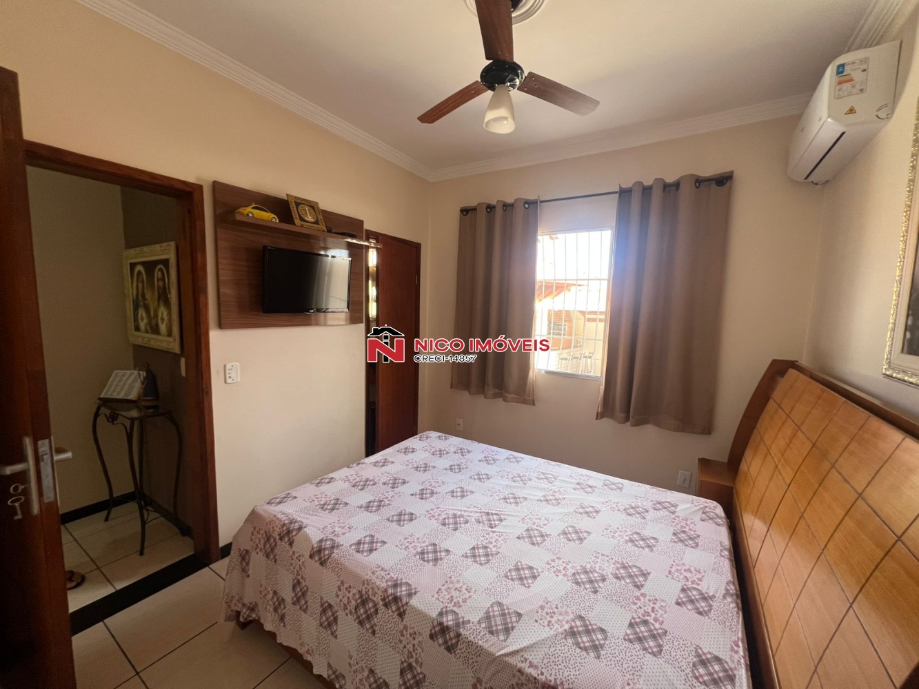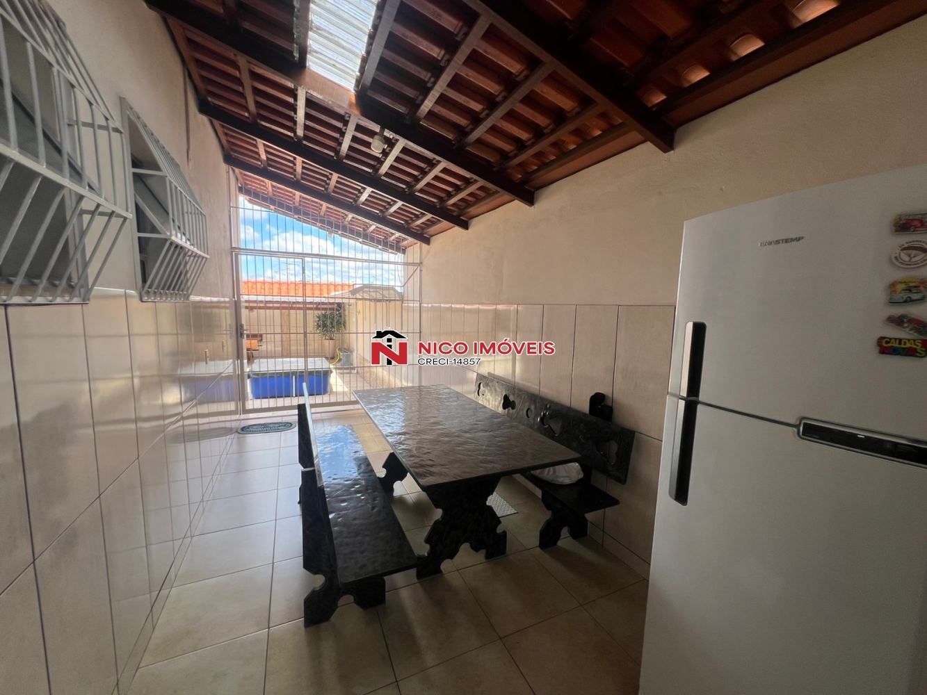 Portão eletrônico,camera de segurança,cerca eletríca, jardim,vaga de garagem para 4 carros sendo 2 cobertos,telhado colonial já todo preparado para aquecimento solar,canil, sala com rebaixamento de gesso e luz de led conjugada com copa,cozinha planejada, bancada em granito, fogão cook top, forno,3 quartos com armario, sendo um com suite e ar condicionado,closet,area de serviço individual, espaço gourmet,churrasqueira,banheiro social,despensa,ducha.